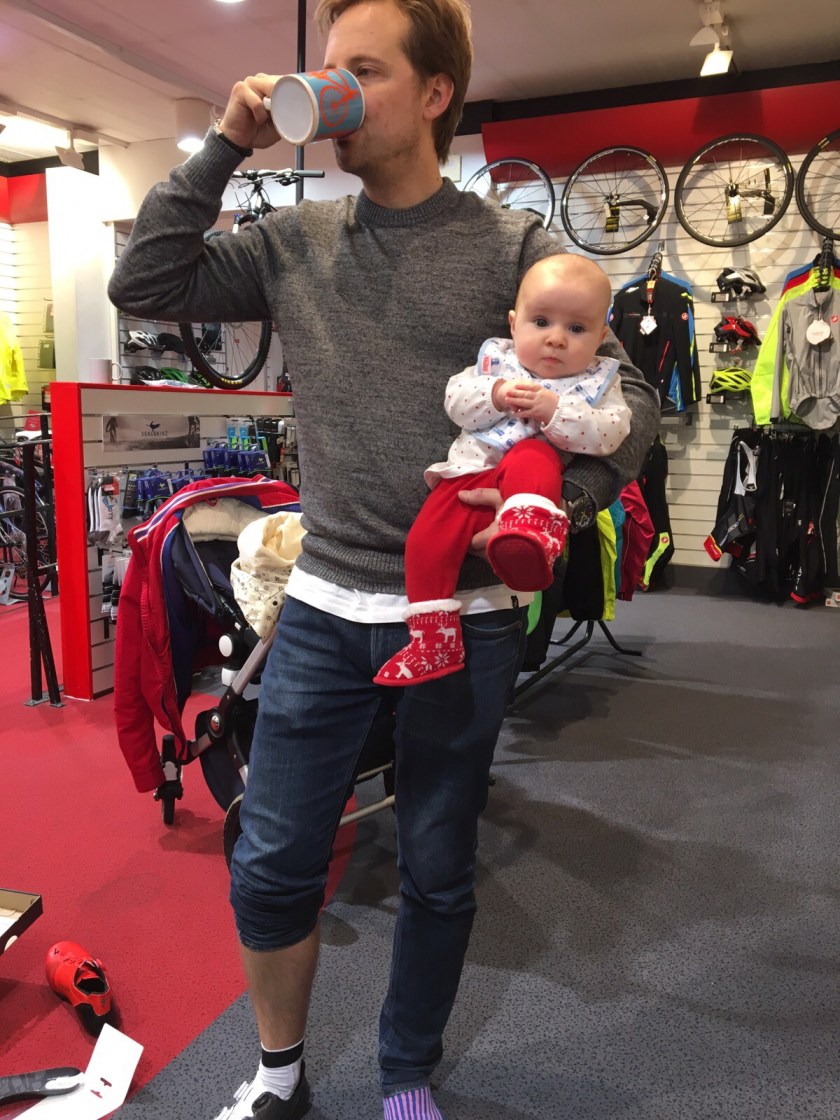 Off the back of my bike fit a few weeks ago Andy found my feet over pronated, this matches the gate analysis I have had for running, meaning I would have uneven pressure applied to the pedals on the outside of my feet. He wasn’t wrong, I have been suffering with pain on the outside of my feet on longer rides. He also assessed the shape of my arch, this highlighted my relatively high arches meaning standard footbeds wouldn’t cut the mustard. At the time of the fit I tried a pair of 2015 Specialized Sworks shoes fitted with the correct footbeds and toe wedges, but as they were now discontinued I thought I would opt for the new 2016 SWorks 6. These weren’t in stock so I returned today, family in tow, to try them out.