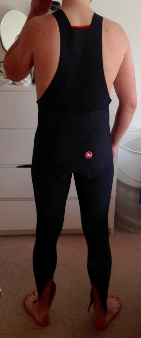 I then squeezed into them, literally. The cut is very slim, as with most Castelli gear, and with the thickness of the Nanoflex Roubaix lined material the bibs don’t have the ability to stretch like normal Castelli shorts. I’m a large in Castelli normally, and they are near perfect a fit, but these are just on the right side of tight. The material does keep you warm but i wouldn’t really say it would be that great below 2 – 3 degrees, the coldest I wore them out in was 5 degrees and you could definitely feel the chill. But it is only Lycra! Length wise in the leg and body they are perfect, I’m 5’10” and 165lb, but when I put these on I have to be careful not to split the stitching in the lower legs due to the nature of the material. The upper parts of the bibs are very similar to my Free Aero Race shorts but with the strap design of the B’Twin 700 Aerofit bibs, a great combo, flat and seamless. The pad in the bibs is the Progetto X2 and is great. a multi density gel pad that’s also aerated to keep you cool. It stays put and is just the right width between my legs meaning it remains very comfy, especially on long rides. I have this pad in my other shorts, it was another deciding factor for choosing the Nanoflex pros..