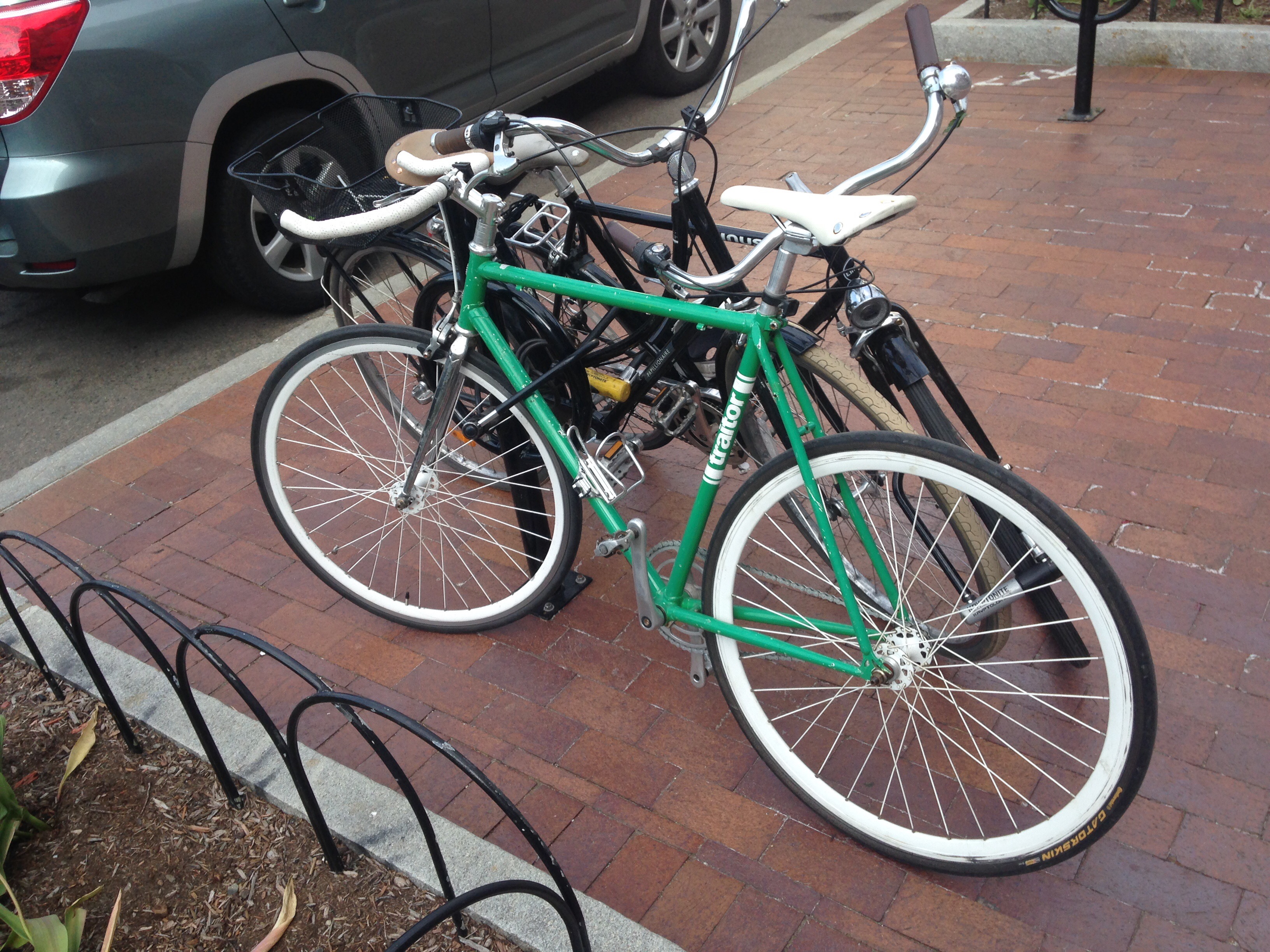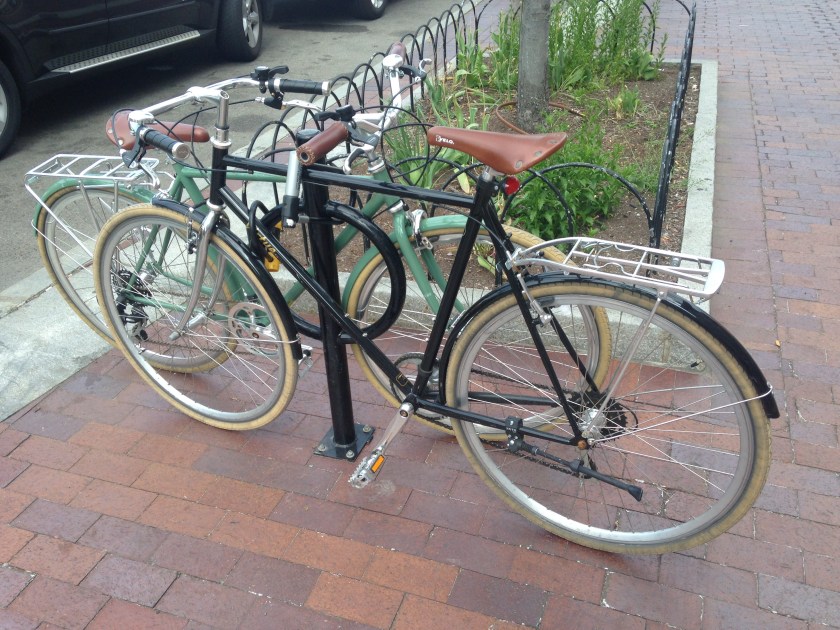 Whilst walking about in Boston I was taken by the amount of cool bikes I saw in the city. Not only that, It was the type. They love their steel, their fixies, and their vintage styles.