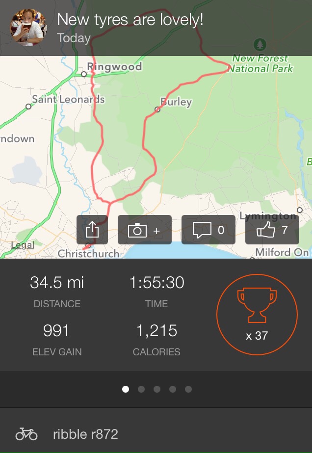 This morning was my first opportunity to test the Specialized Turbo Cotton tyres I have just fitted. My first impressions are positive, in fact they couldn’t be more different in performance to my last tyres. Have a look at the strava stats for my ride: