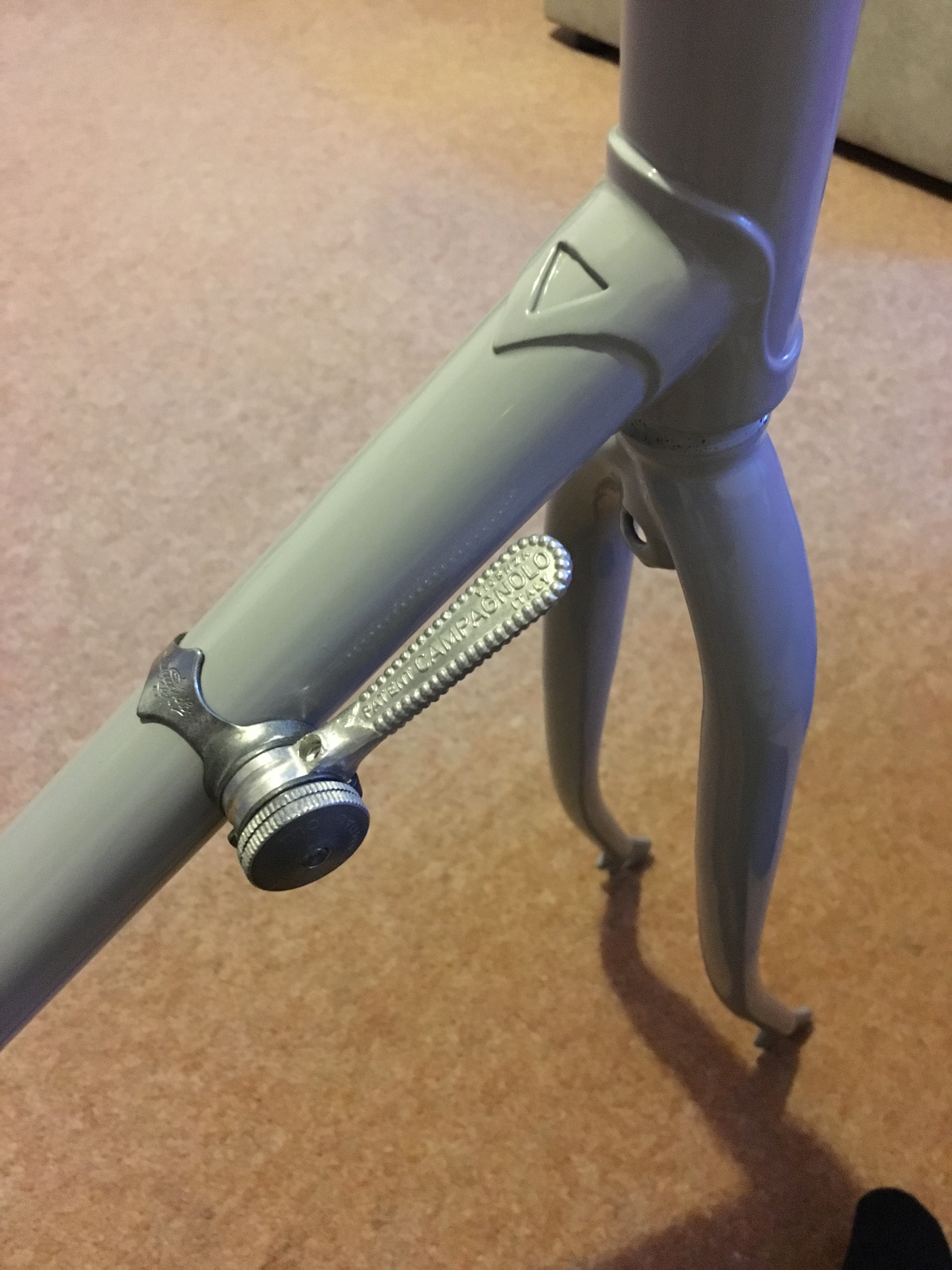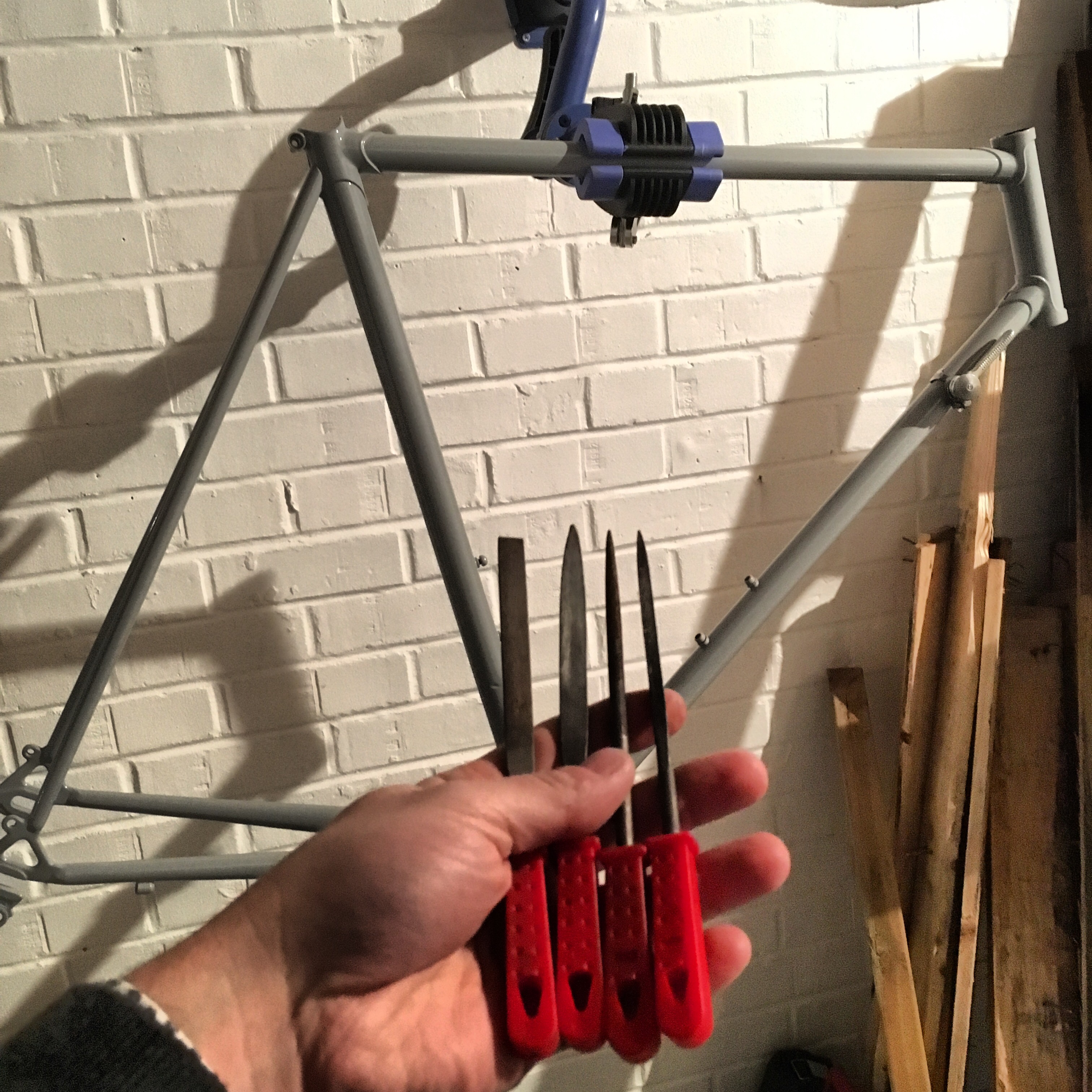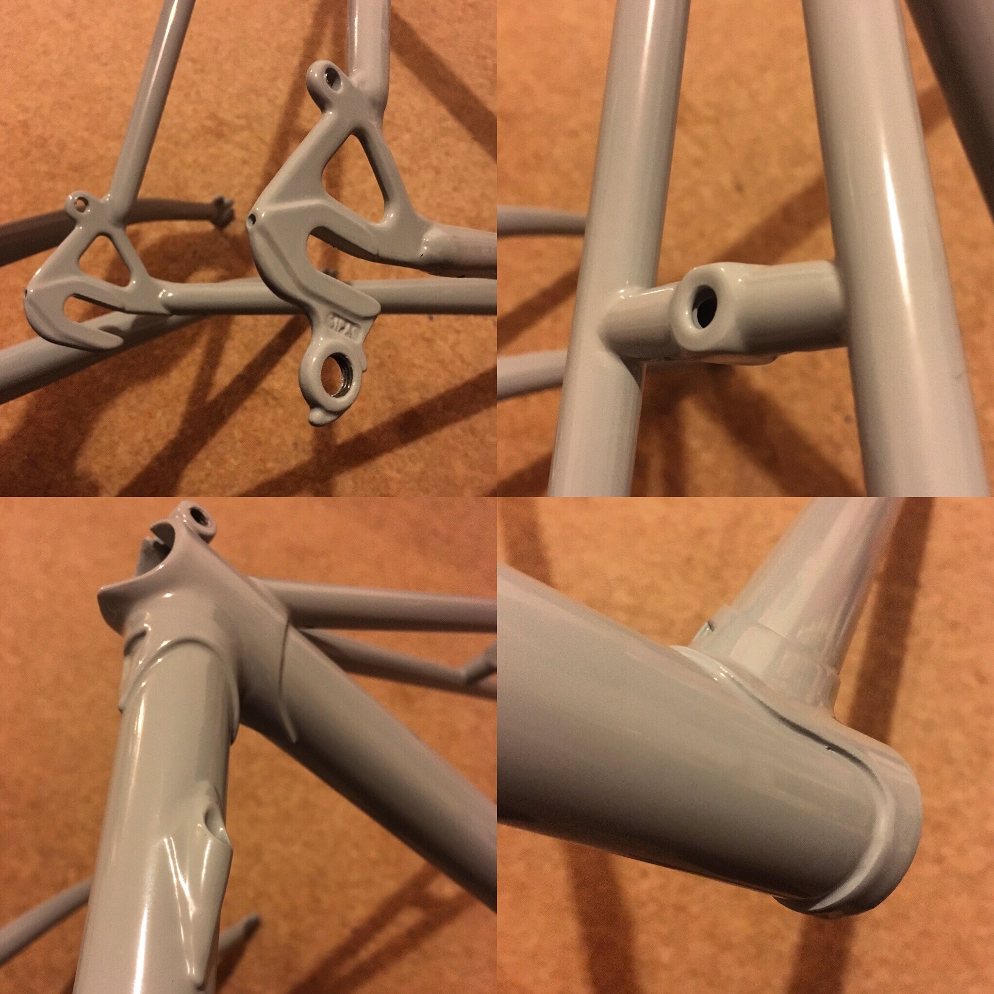 The mystery Columbus frame went off for powder coating last week at PowderTec in Poole. They have coated a number of frames for me in the past and have always done a cracking job. After filing all the crappy leftover mounts from the frame I dropped it off on the Monday. Not knowing exactly what colour I was going for the guys at powdertec gave me some Pantone charts to browse, then when I had chosen a colour I could select Matt, silk, or gloss finish.