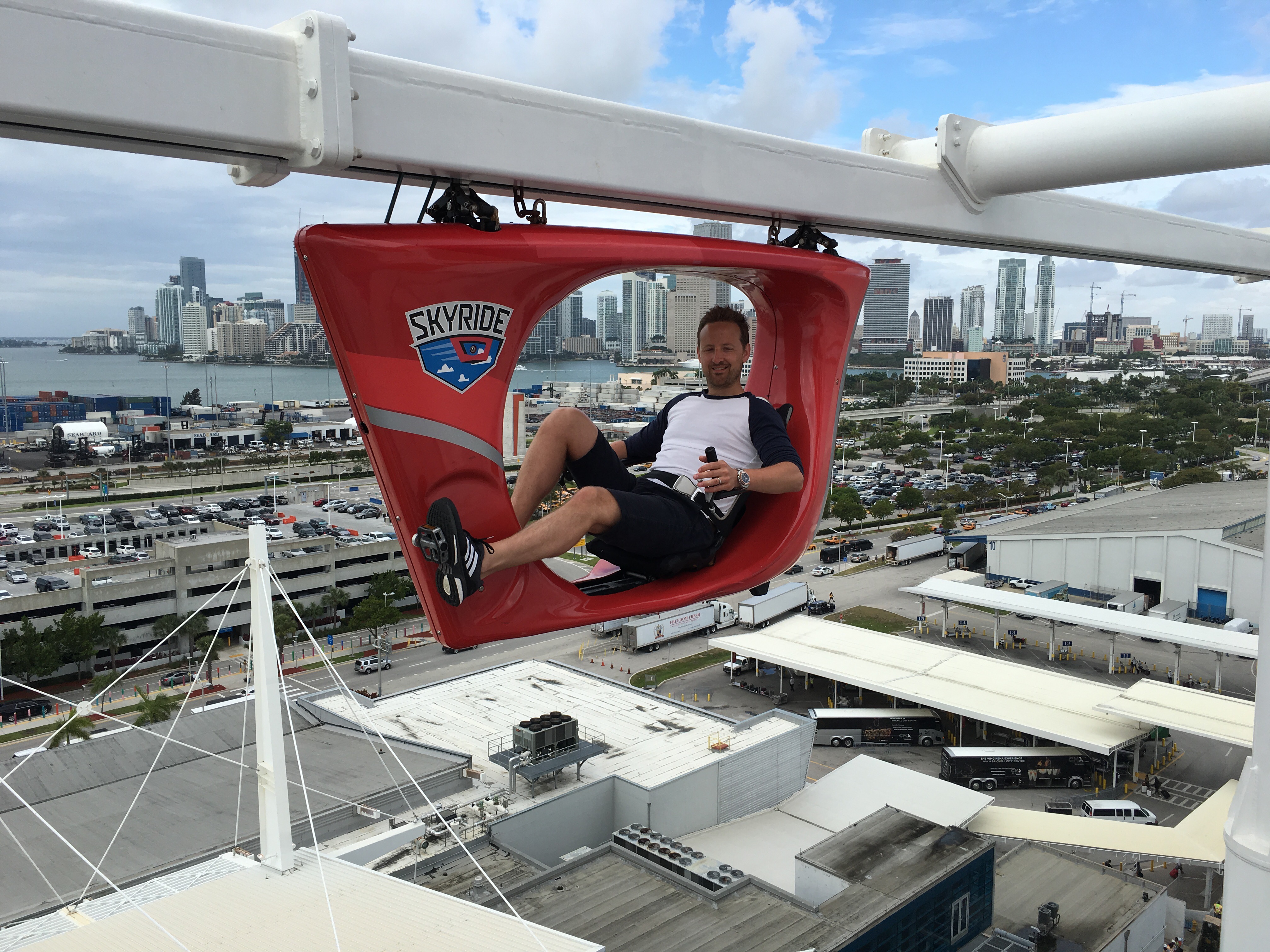 Whilst on holiday in Miami I rode Carnival Cruise Lines SkyRide, their mid air bicycle experience built on their ship Vista. I also chatted to the guys behind building and running this incredible onboard attraction.
