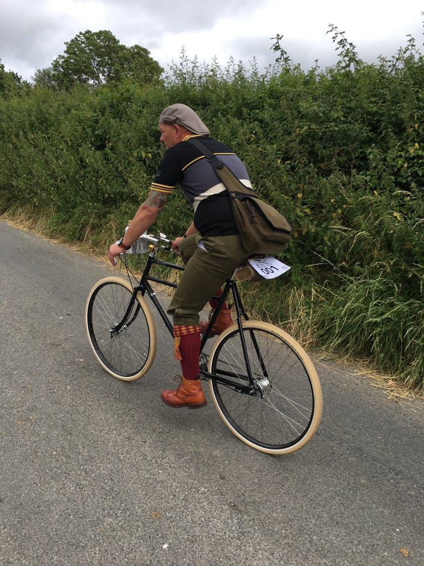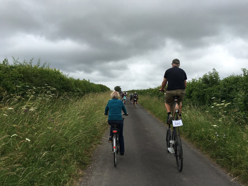 The ride started out of showground just south of the town centre, we were all kindly guided out onto the main road by the event staff and we were on our way. Working our way through the town centre we headed through Pamphill and toward Shapwick down narrow, high hedged, country lanes synonymous with our south western countryside. The bunch held together with only one stop for a rod brake based mechanical issue. Shapwick was the halfway point of the ride, taking refreshment in the Anchor Inn. There were various takes on the mid ride recuperation with alchohol, caffeine, and good old H2O being quaffed in equal measures. I obviously opted for a swift ale but was limited in choice, if you are reading this The Anchor Inn you need to up your beer game – there were far to many lagers on tap! and not a new world hop to be seen.