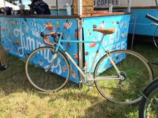 Saturday we signed on for the ride and collected our musettes, ride numbers, and had a look around the show ground. From the moment we arrived the festival felt more contained and standalone than before. Cars all in one field with a short walk into the festival grounds. Inside the arena there was plenty of room, maybe too much? But plenty to see. With food stands, vintage clothing, bicycle jumble, best in show area, two big bars, and the main stage there was plenty to keep family entertained. Throughout the day the main stage played host to a mix of musical styles all with a vintage twist, and near centre of the ground a vintage car display put on by Jimmys Iced Coffee as part of their RideClub. The Christchurch based business also served up top iced coffee and white Russian cocktails alongside this. We all had a good nosey around with a good stint in the bike jumble, maybe picking up a few last minute add ons for the bikes, grabbed some lunch (food had a great selection), and had a beer in one of the festivals two giant beer tents. We then proceeded to dress my brother up in a dinosaur costume and parade him around the showground (it was his stag do after all) to make a fool of him. It actually ended up making him one of the main attractions with kids from all over the show wanting to either try and kill him or get a photo with him.
