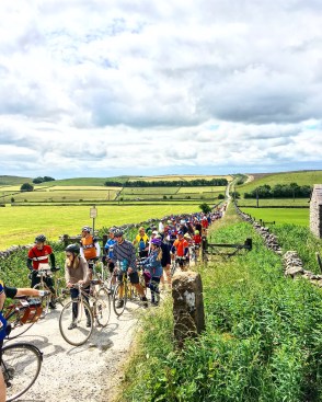 Sunday came. We all stuffed breakfast down and set off to the start line aiming to head off for half eight. After parking and unloading the bikes we were there or there about on time. Riding into the show ground we flashed our wristband and headed for the start. Lining up for an obligatory pre-ride photo we waited for our turn, then we were off. Heading out under the gantry, out of the gates, and down a disused railway line to churn our first few miles. We had a mix of abilities and bicycles on the day and the 60 miler proved a little too much for both bike and rider for a couple of us, with one bike going through two sets of brake blocks in 15 miles!!! that just goes to show the amount of climbs in the Peak District (plus you can’t take the look of a bikes brake blocks as a guide to their longevity!). We decided to find our way back to the 30 mile loop and join that, and by the number of people that had loaded up the fuel stop at Moneyash we weren’t alone! They even ran out of sandwiches due to the number of 60 mile dropouts.