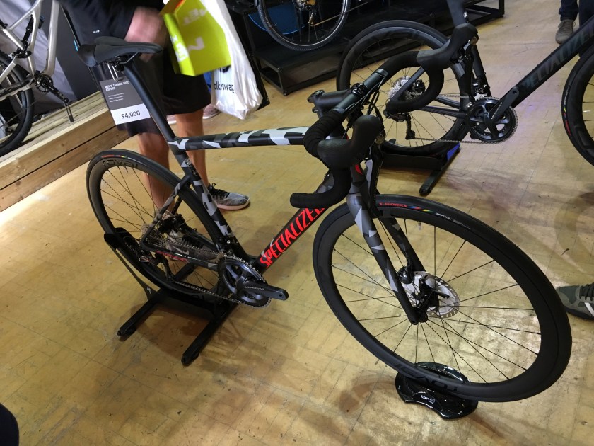 The sale area houses clearance clothing, bikes, and accessories all at super knock down prices. And the last few years I’ve picked up a few bargains. This year the selection was a little slim though with no Castelli and no Assos for guys. Just a lot of sugoi and endura, both brands I have little connection with so after a quick shifty through the racks it was off round the show.