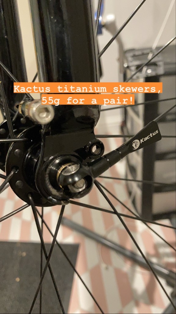 - saddle – second hand fabric scoop with titanium rails from Ebay – £25