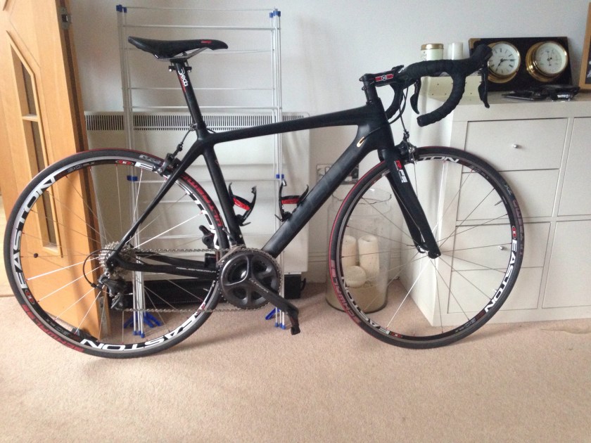This was initially a ride to work special maxed out at £1000, and for the money you get a fantastic bike. It remained in original spec for about a year until I was unfortunately knocked off quite badly. It was then rebuilt and upgraded significantly. Bike now weighs in just over 7kg and is fast all over, especially up hills. Full Ultegra 6800 mechanical groupset, Deda Trentacique 35mm carbon bars and stem, Deda Dritissimo seatpost, Look Keo pedals, choice of Adamo/Charge/Selle Italia saddles, Easton EA90 SLX wheels, and Schwalbe Ultremo tyres.
