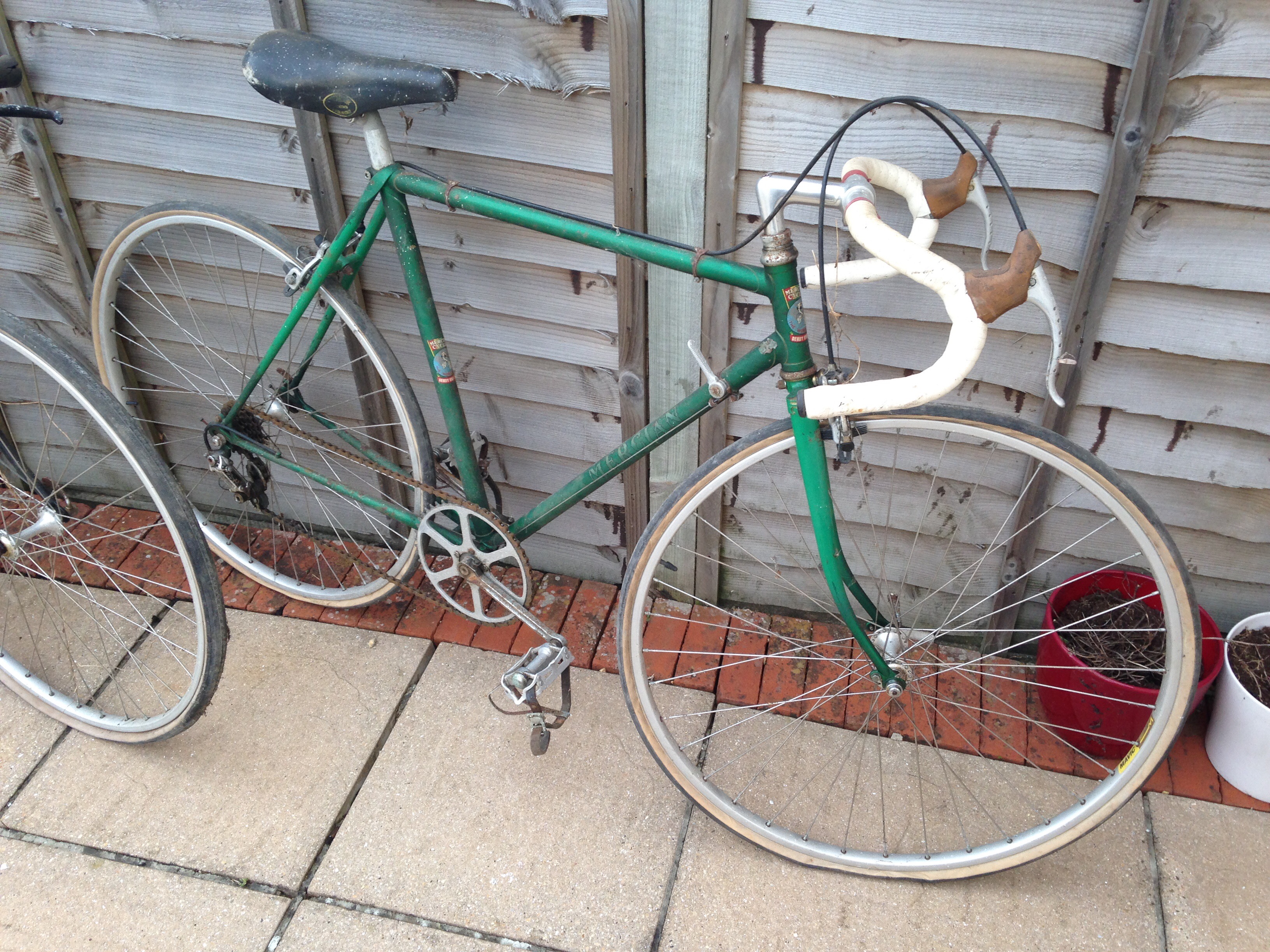 This is pure self indulgence. I found this one at a spot good for picking up the odd treasure but it was in a very bad state. Hand sprayed about ten times and with awful stickers on it, chain rusted solid, mechs and shifters were junk, saddle and seatpost were beyond saving, as were the levers and wheels. So that leaves the Ofmega cranks, bars, stem, calipers, and the frameset.